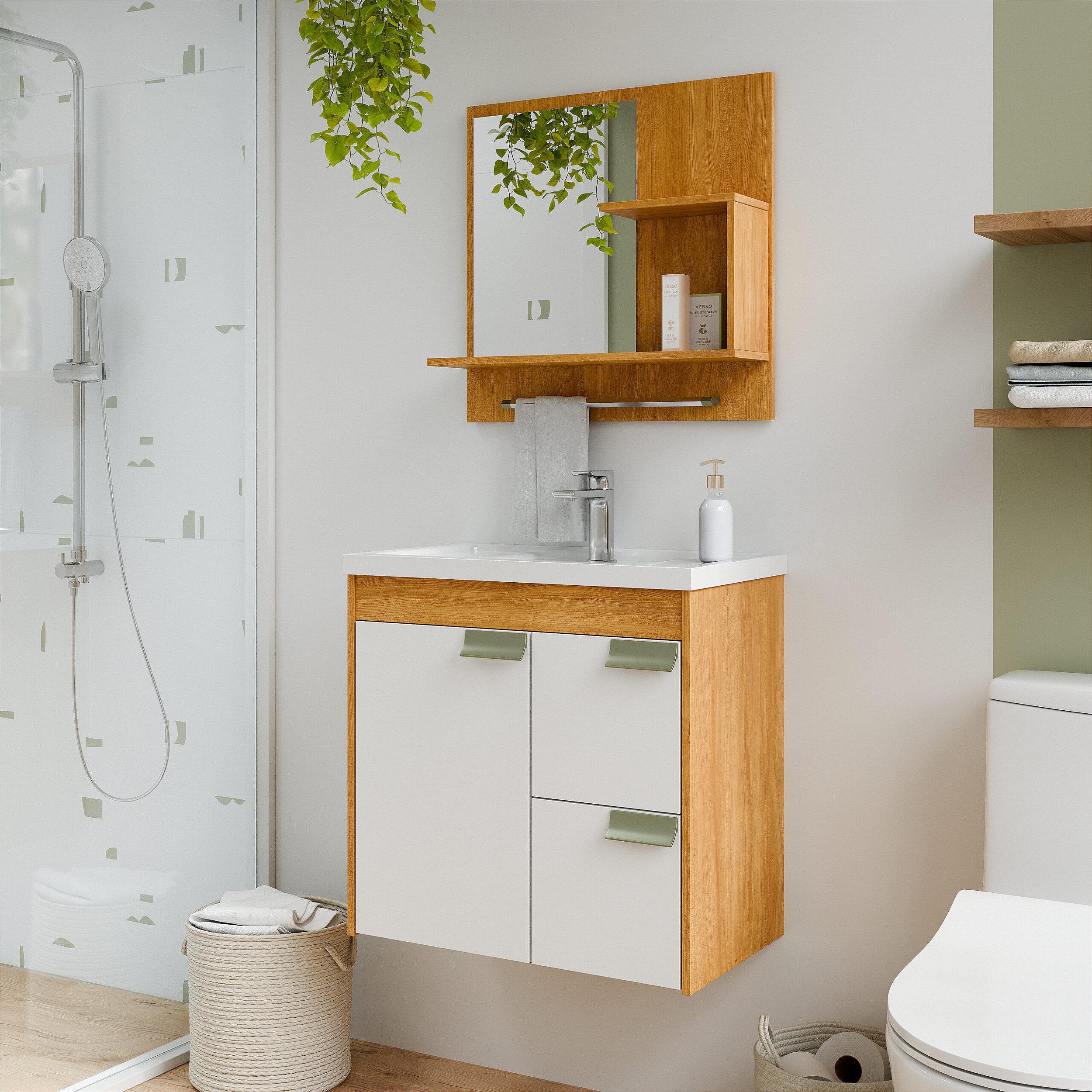 O Kit Tulipa da MGM é a escolha perfeita para quem deseja aliar funcionalidade e sofisticação no ambiente de autocuidado. O armário oferece excelente capacidade de armazenamento com duas gavetas equipadas com corrediças telescópicas e uma porta com amplo espaço interno. Os puxadores em ABS na cor Gold Fosco garantem um toque de elegância ao visual.